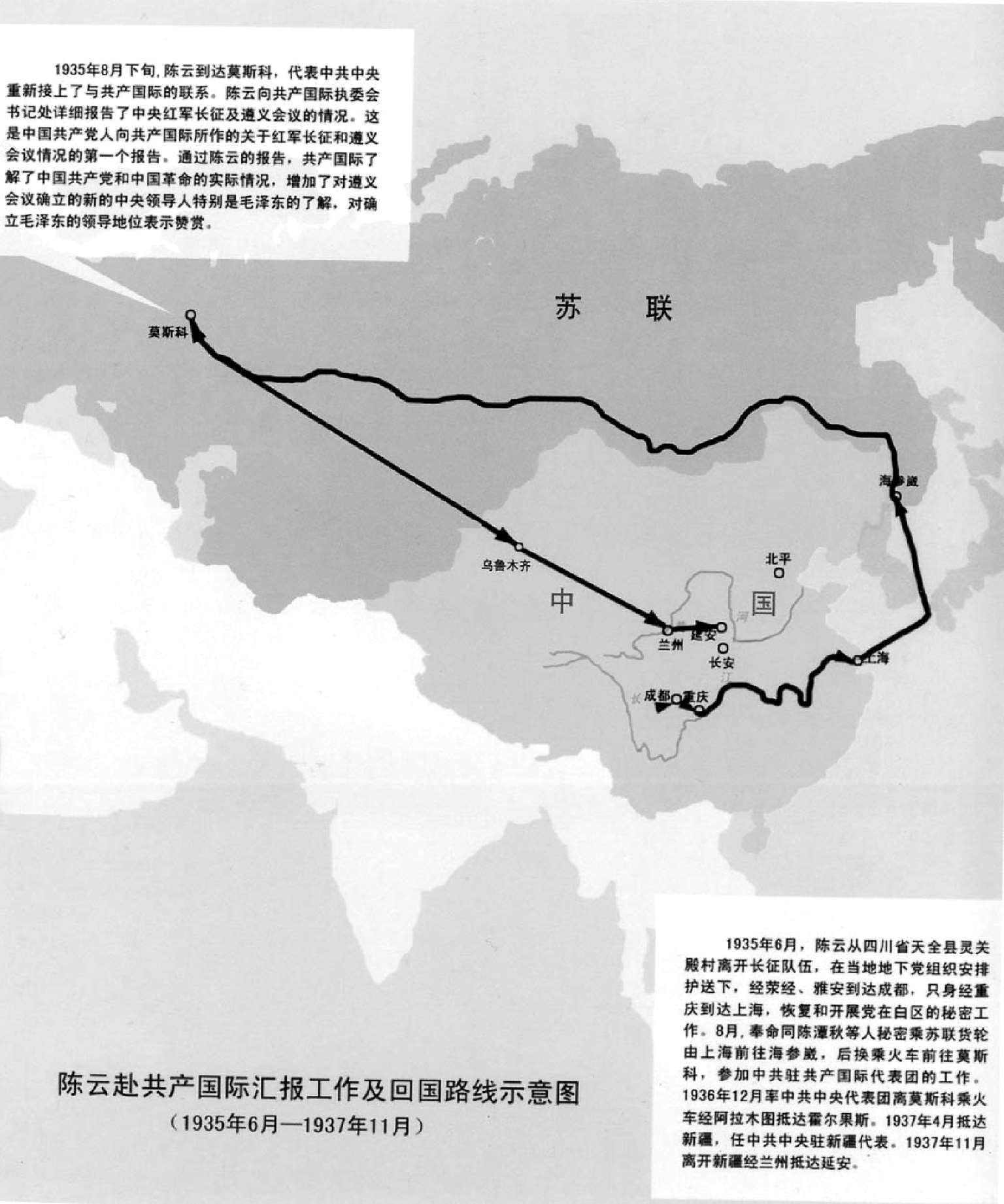 这时,共产国际第七次代表大会刚闭幕不久。由于共产国际与中央红军已长时间失去联系,陈云便借此机会在10月15日召开的共产国际执委会书记处会议上,向共产国际领导人详细地汇报了红军长征和遵义会议的情况。