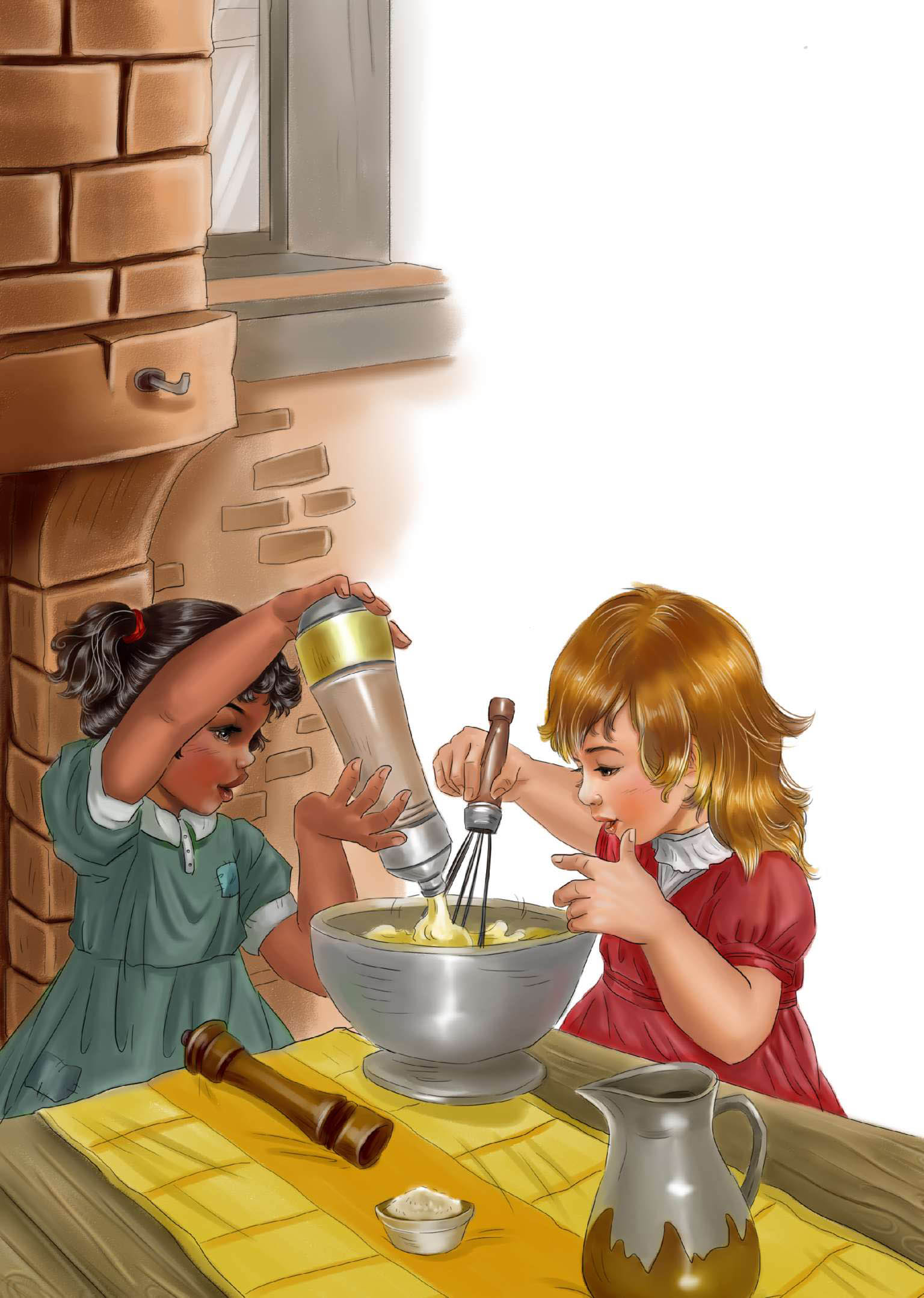 我们俩总是一起待在厨房里,揉面团儿,做冰激凌,磨咖啡。有时我们俩喂火鸡,这些家禽都不怕人。它们从我手上叼食吃,并乖乖地让我抚摸。有时我们也会为做什么样的蛋糕而争吵不休。