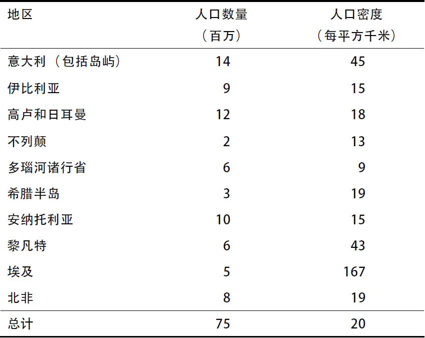 的明确陆地距离,并且,这位伟大的天文学家还知道一些航海者曾经走海路到达过远东。汉帝国在许多方面都是一个合适的比较对象,但即便在这里,人口似乎也从没达到过罗马帝国的最高值——7500万(在东方,这一数字要等到稻米经济的全面发展和大运河系统的建立)。有一个更明显的对比。一位2世纪中叶的中国作家曾经为东汉帝国中心地区的人民所承受的压力而哀叹:“中州内郡,规地拓境,不能生边,而口户百万,田亩一全,人众地荒,无所容足。”在罗马环境中,由于没有这样的哀叹而特别引人注目。