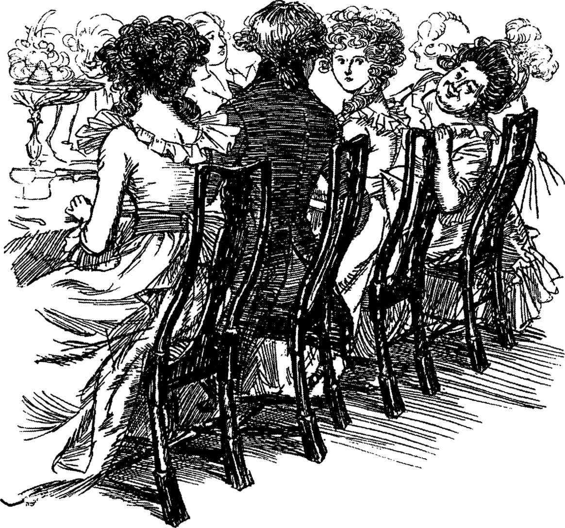 大家商定晚上要举行一场舞会,好让每个人都痛痛快快地乐上一整天。凯里家又来了几个人吃饭,几乎有二十个人高高兴兴地一起用餐,约翰爵士看在眼里别提有多得意了。威洛比像往常一样坐在达什伍德家的大小姐和二小姐中间。詹宁斯太太坐在埃莉诺的右手边;大家刚入座不久,她就扭身俯在埃莉诺和威洛比背后跟玛丽安说起悄悄话来;那声音又刚好能让他们俩都听到:“你们耍什么花招也别想瞒过我。我知道你们在哪儿待了一上午。”