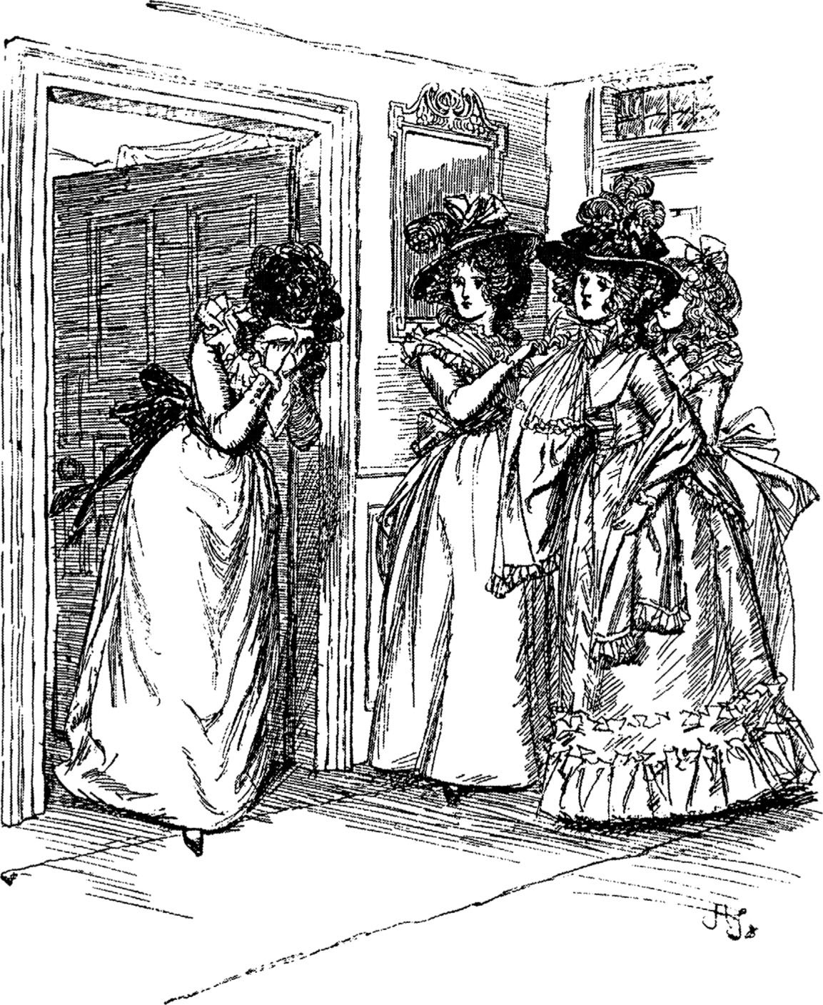 她们从庄园回来以后,发现威洛比的轻便马车和仆人正在她们门口候着,达什伍德太太确信她的猜测一点都没错。到此为止,一切尽如她之所料;可是一进了门,她所见到的情形可就完全出乎她的意料了。她们刚走进过道,玛丽安就从客厅里飞奔出来,显然悲痛难当,用手绢儿捂着眼睛,根本就没注意到她们,噔噔噔地跑上楼去。她们又惊又怕,径直走进她刚跑出来的客厅,发现只有威洛比一个人待在里面,背对她们倚在壁炉架上。她们进来以后他才转过身来,从他的面色上看得出来,他的情绪就跟玛丽安一样痛苦不安。