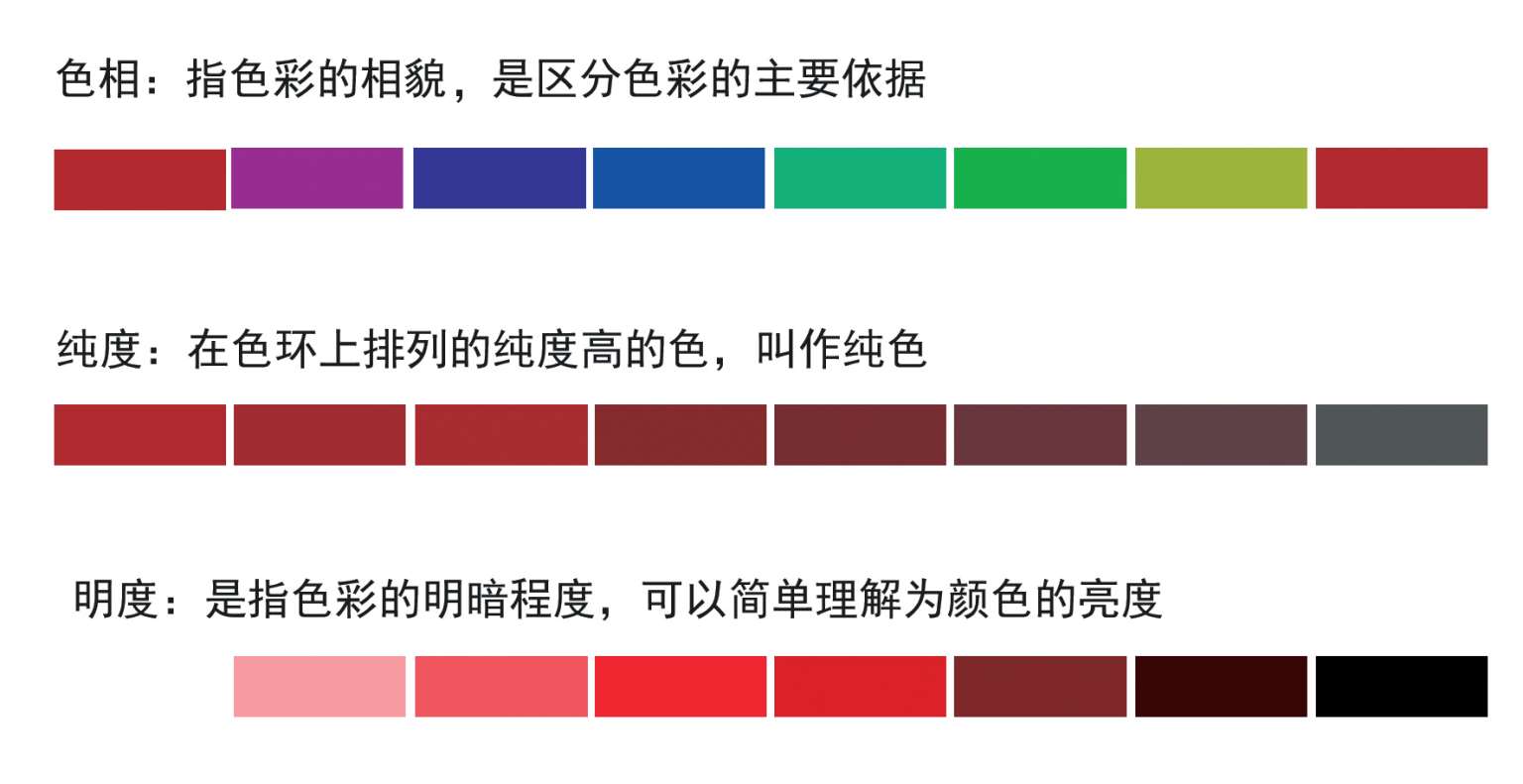 1. 色彩的三要素:色相、明度、纯度