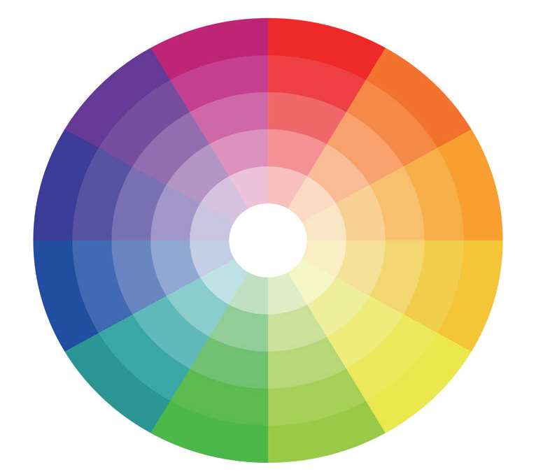 不同的色相,会发射出不同波长的光波,且各色相之间并没有明显的界限,而红、橙、黄、绿、青、蓝、紫以及处在它们之间的红橙、黄橙、黄绿、蓝绿、蓝紫、红紫等颜色,刚好形成一个无缝的圆环,即色相环(也称12色环)。