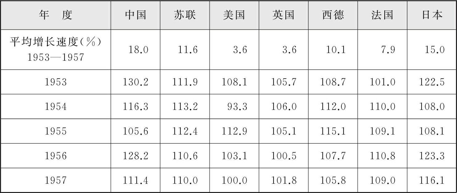 表1-3 1953—1957年中国工业总产值增长速度与主要国家比较 (单位%)