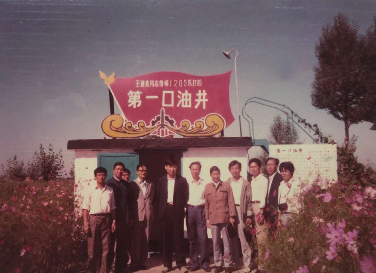 1986年8月,习近平(左五)率领厦门经济协作代表团赴黑龙江参加省横向经济协作大会,在大庆油田第一口油井前合影留念。