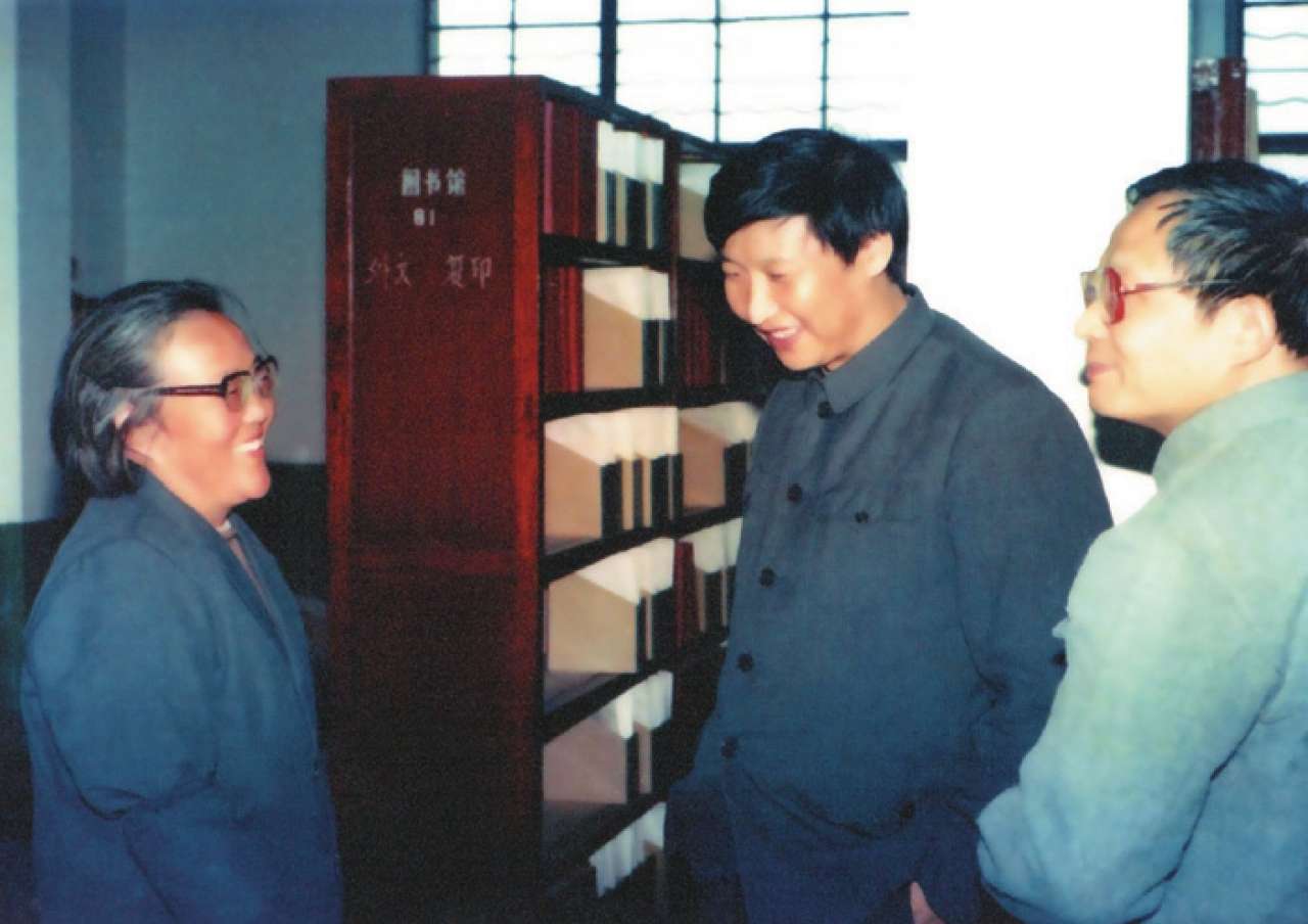 1989年10月,习近平(中)在宁德师专图书馆与教职工交谈。