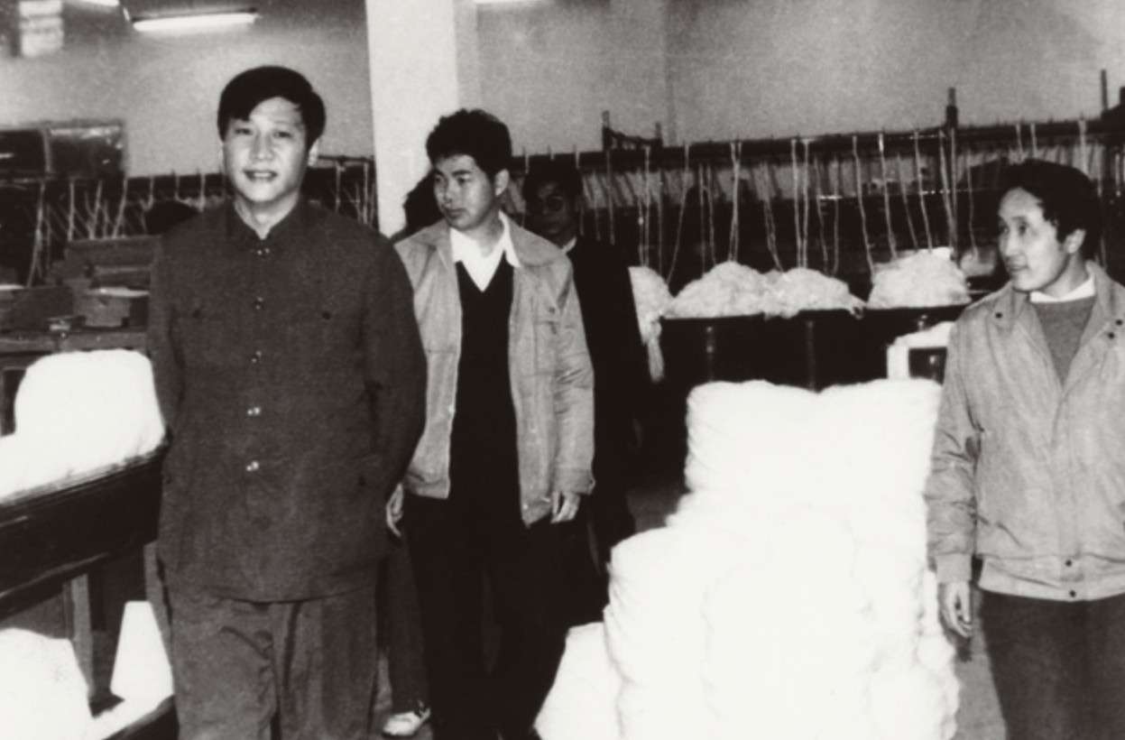 1989年11月,习近平(右一)在柘荣县企业调研。