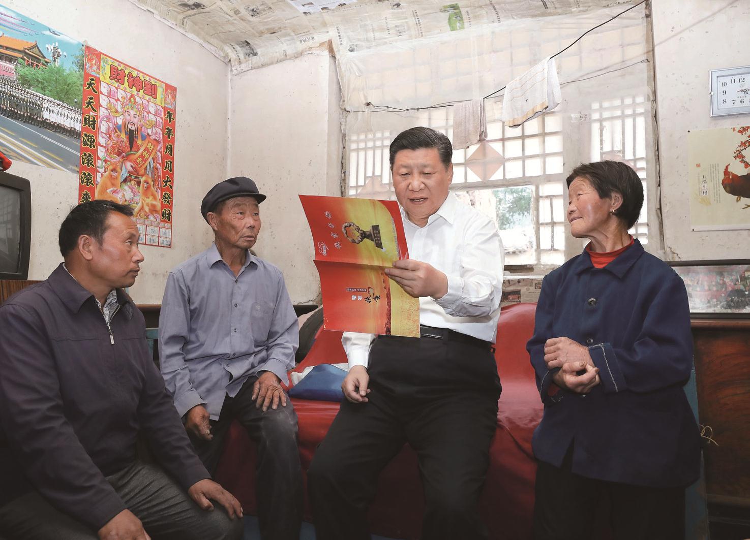 2017年6月21日至23日,习近平在山西考察并主持召开深度贫困地区脱贫攻坚座谈会。这是21日,习近平在忻州市岢岚县赵家洼村特困户刘福有家中察看扶贫手册。
