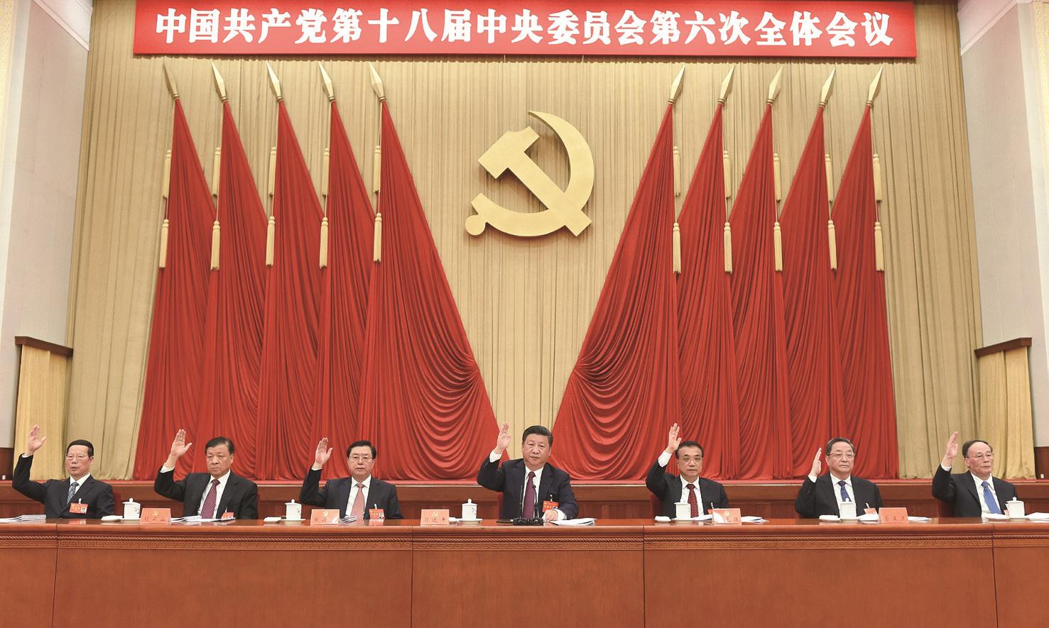 2016年10月24日至27日,中共十八届六中全会在北京举行。这是习近平、李克强、张德江、俞正声、刘云山、王岐山、张高丽等在主席台上。