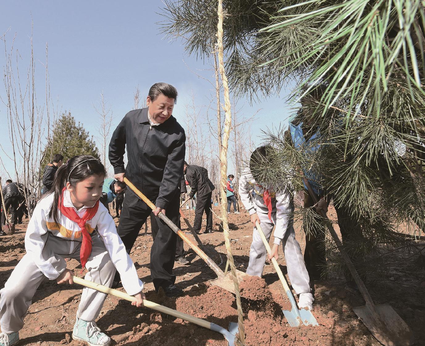 2015年4月3日,习近平在北京朝阳区孙河乡参加首都义务植树活动。