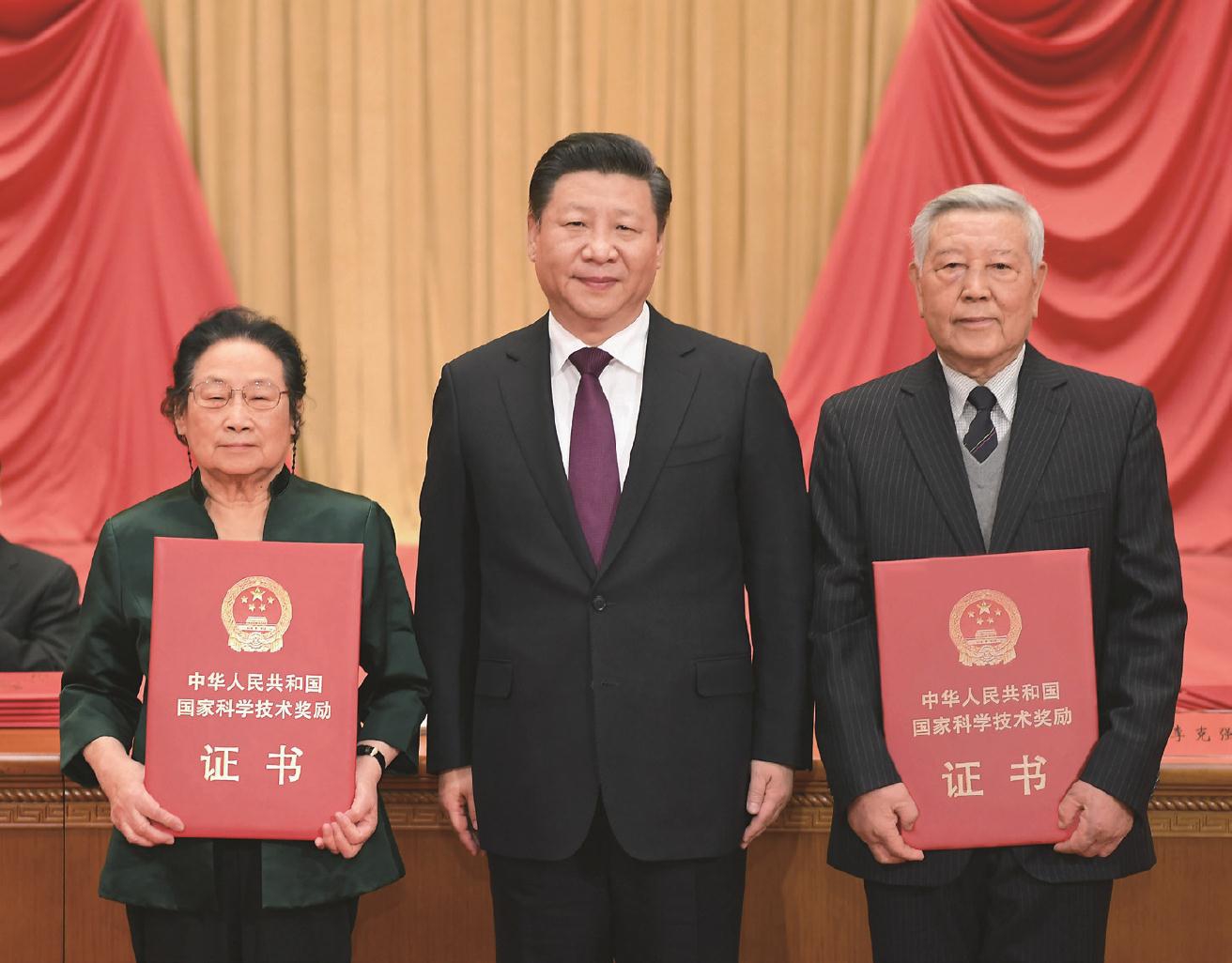 2017年1月9日,习近平在国家科学技术奖励大会上,向获得2016年度国家最高科学技术奖的中国科学院物理研究所赵忠贤院士和中国中医科学院屠呦呦研究员颁奖。