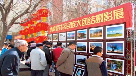 2017年2月,西宁市城东区清真巷社区举办民族团结进步摄影展(作者提供)