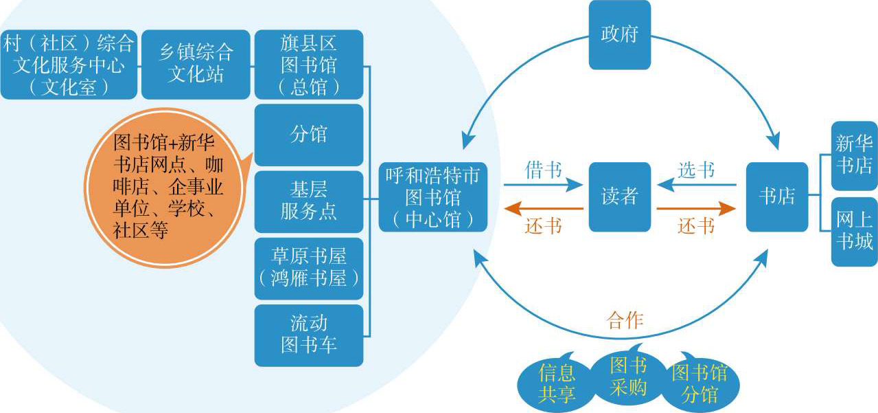 呼和浩特市创新实施“鸿雁悦读”计划,以图书馆总分馆体系为纽带,打通图书馆、新华书店和农家书屋的阅读资源,探索文化事业与文化企业深度对接的途径,着力推动全民阅读。一方面,盘活现有资源,构建便捷的阅读网络。以图书馆总分馆制为依托,图书馆与新华书店基层网点、社区综合性文化服务中心合作,在全市设立64个分馆;将农家书屋体系的“草原书屋”纳入图书馆总分馆体系中;建成全国首家无人值守书店及在线服务平台,读者可凭借“鸿雁”读书卡通借通还,实现资源融通,有效弥补了公共文化设施的时空限制。另一方面,创新供给方式,将部分采购权交到读者手中,读者可以在新华书店各网点根据自己的喜好购买和借阅图书,将原来由政府采购图书的“配菜”模式变为“群众点单、政府买单、新华书店送单”的“上菜”模式,深受群众欢迎。