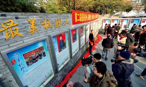 3.抓好“最美风尚”展示工程。为解决户外广告中商业广告多、公益广告少而市民反映多的问题,2015年,杭州市政府有关部门对户外广告进行了专项整治,拆除了违法的商业广告牌,扩大了公益广告位。在主城区中心道路延安路建设“最美一条街”,全年悬挂“最美杭州人”的宣传广告。同时,在全市推进“最美杭州人”光荣墙(廊、栏、室)四级体系建设,让“最美人物”的先进事迹充分得到展示。到2017年,实现了全市190个乡镇(街道)、3074个村(社区)光荣墙(廊、栏、室)全覆盖。2013年以来,各类上榜的“最美人物”已达3万余名。推进市和区、县(市)两级“美德档案”体系建设,建立健全“美德档案”搜集、整理、上报制度。“最美人物”的资料得到了完好保存。