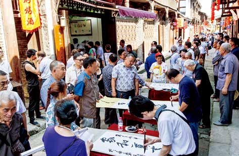 巴南区丰盛镇在“家训一条街”组织书法家为居民免费书写家训(作者提供)