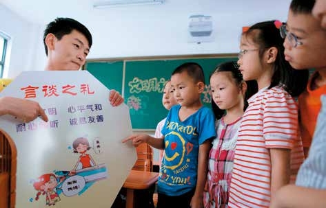 1.全面融入课堂教学。把文明礼仪养成教育纳入学校教育教学的各个环节,指导推动各级各类学校深入挖掘各门课程中蕴含的文明礼仪教育资源,并渗透到相关教育教学中。尤其是在思想品德等课程中强化文明礼仪教学,明确课时要求,鼓励有条件的学校开设专门课程,并有机融入“开学第一课”,逐步形成制度。截至2019年5月,全省有1500所学校编印了校本教材,有3000多所学校开设了专门课程,编创校本教材1600多种。2015年,省文明办、团省委将“八礼四仪”养成教育纳入少先队活动课实施内容,编入一至八年级《少先队活动课辅导用书》。2018年,省文明办、省教育厅开展了文明礼仪优秀校本教材征集和示范课评选活动,并组织编创面向全省中小学校的省编读本。坚持把文明礼仪作为新任教师岗前培训、在职教师全员轮训的重要内容,每年暑期举办骨干教师培训班,提升教师文明礼仪素养、文明礼仪示范意识和文明礼仪教学能力,以此带动学生文明礼仪习惯的养成。