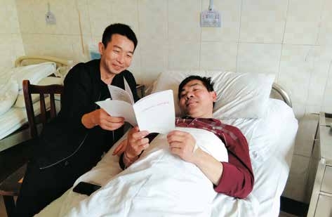 煤矿工作人员给工伤职工讲解工伤保险政策(作者提供)