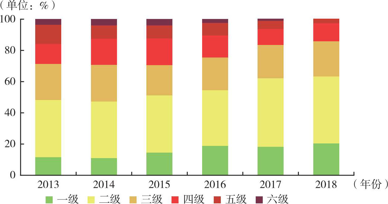 党的十八大以来,北京市牢牢把握“转型期”大气污染物排放来源和特征,以习近平生态文明思想为指导,始终坚持以人民为中心的发展思想,贯彻“五位一体”总体布局和新发展理念,坚决落实习近平总书记四次视察北京的指示,围绕首都“四个中心”战略定位,将蓝天作为市民幸福生活重要标志,聚焦PM 2.5 污染治理,深挖减排潜力,以前所未有的力度治理大气污染。至2018年北京各项污染物浓度出现快速下降,PM 2.5 、SO 2 、NO 2 、PM 10 年均质量浓度为51μg/m 3 、6μg/m 3 、42μg/m 3 、78μg/m 3 ,比2013年分别下降43.0%、77.4%、25.0%、27.8%;空气重污染天数从2013年的58天减少到15天,减少了74.1%,重污染发生频次、污染程度、持续时间明显下降,进一步增强了全市人民的“蓝天”福祉,为建设国际一流和谐宜居之都奠定了坚实的生态环境基础。