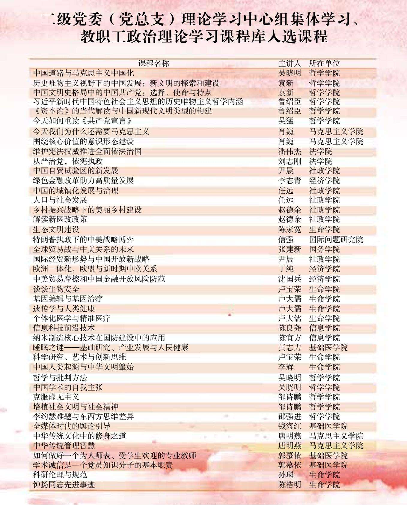二级党委(党总支)理论学习中心组集体学习、教职工政治理论学习课程库入选课程 (作者提供)