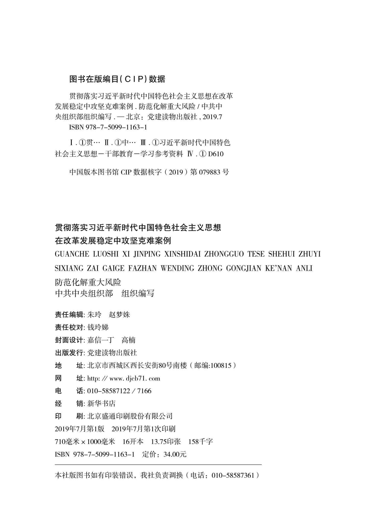 党的十九大报告将防范化解重大风险摆在坚决打好三大攻坚战的首位。习近平总书记强调,坚持底线思维,增强忧患意识,提高防控能力,着力防范化解重大风险,保持经济持续健康发展和社会大局稳定,为决胜全面建成小康社会、夺取新时代中国特色社会主义伟大胜利、实现中华民族伟大复兴的中国梦提供坚强保障。为帮助广大党员干部全面学习领会习近平新时代中国特色社会主义思想,深刻把握习近平总书记关于坚持底线思维着力防范化解重大风险的重要论述,从党的十八大以来防范化解重大风险的生动案例中深入学习强化忧患意识、提高防控能力的经验做法,激励干部进一步增强防范化解重大风险的政治自觉和责任担当,中央组织部组织编选了本书。