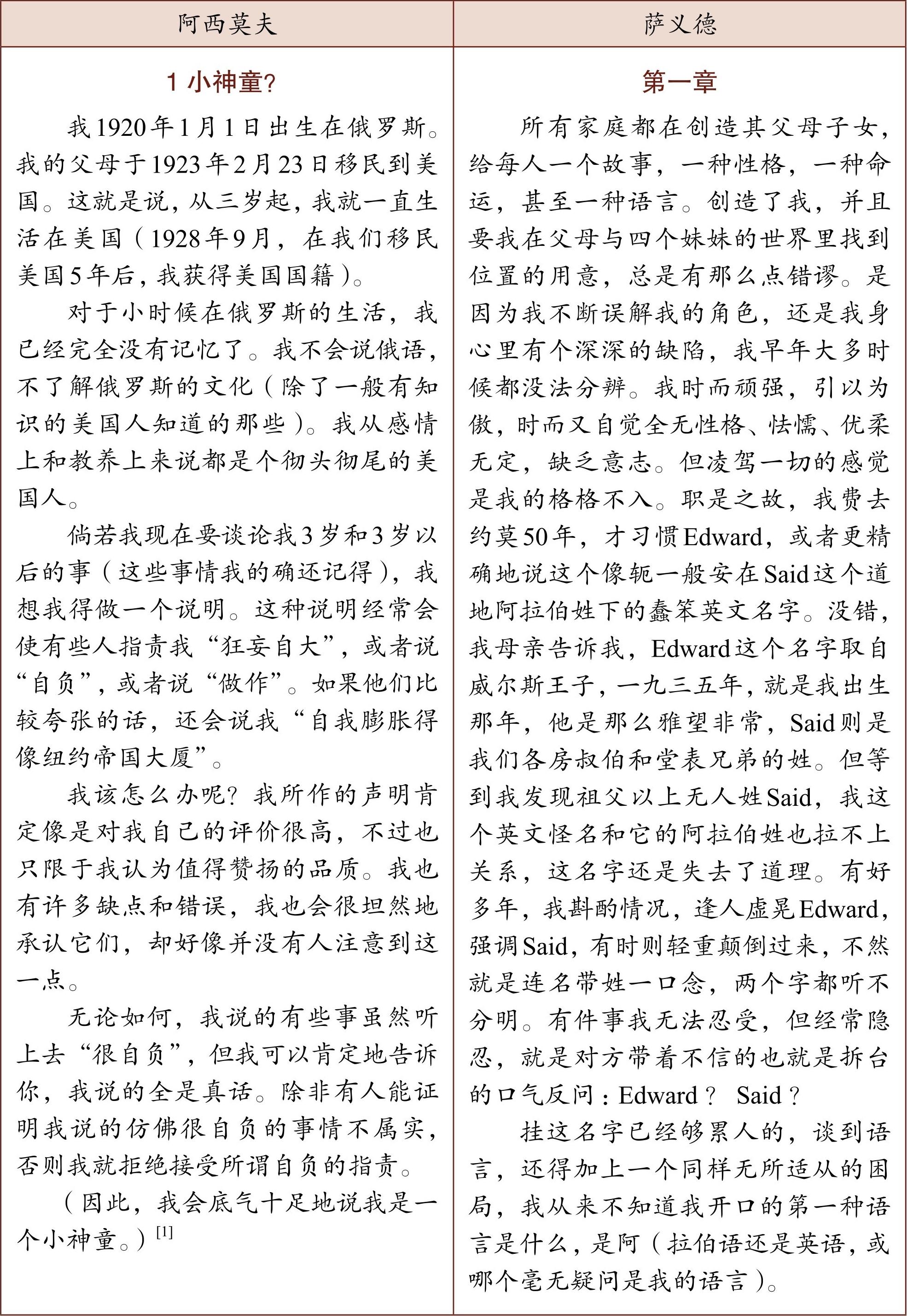 表5-1 阿西莫夫和萨义德自传第一页对比