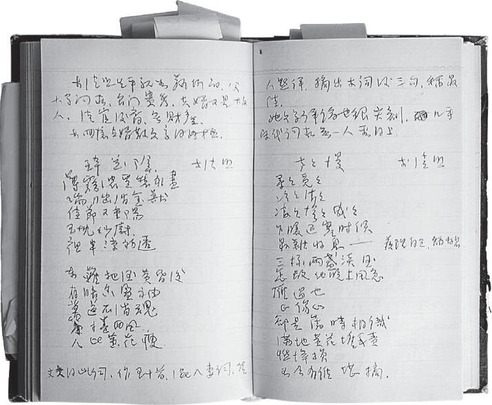 本课笔记内页:“她(李清照)的文学评论也很尖刻,几乎宋代词家无一人看得上。”