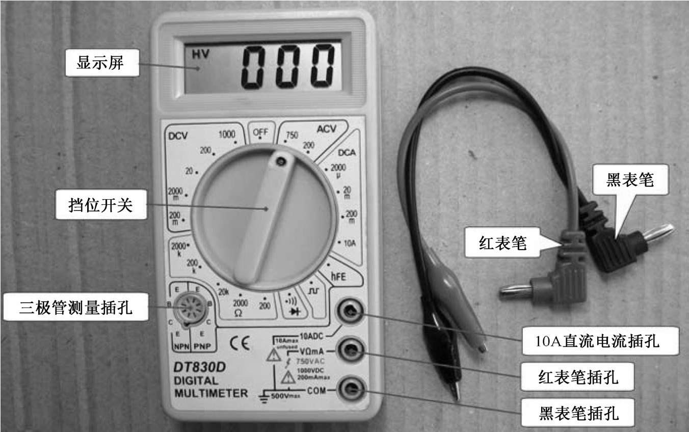 数字万用表的面板上主要有显示屏、挡位开关和各种插孔 。DT-830型数字万用表面板如图3-10所示。