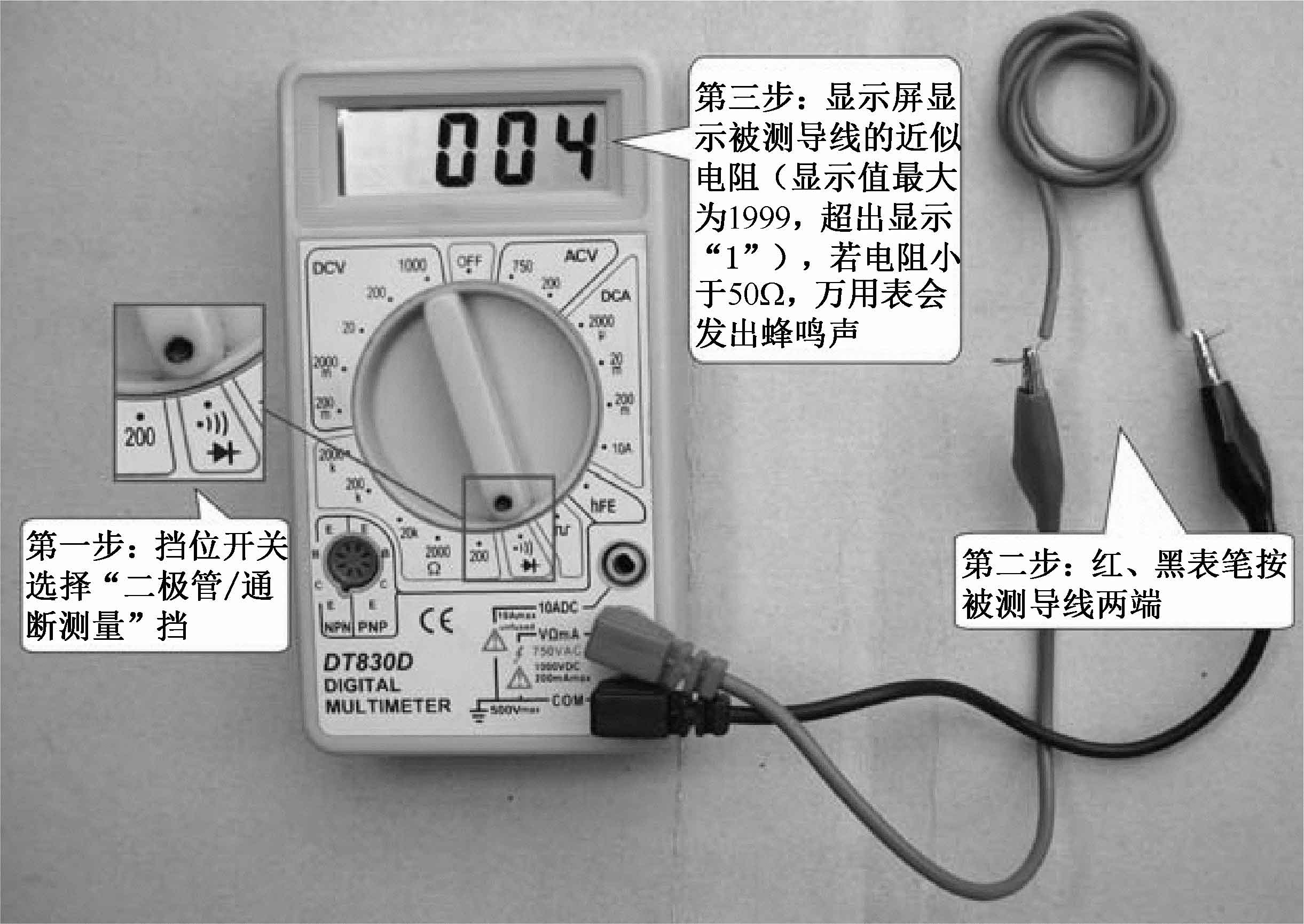图3-16 用“通断测量”挡检测导线的通断