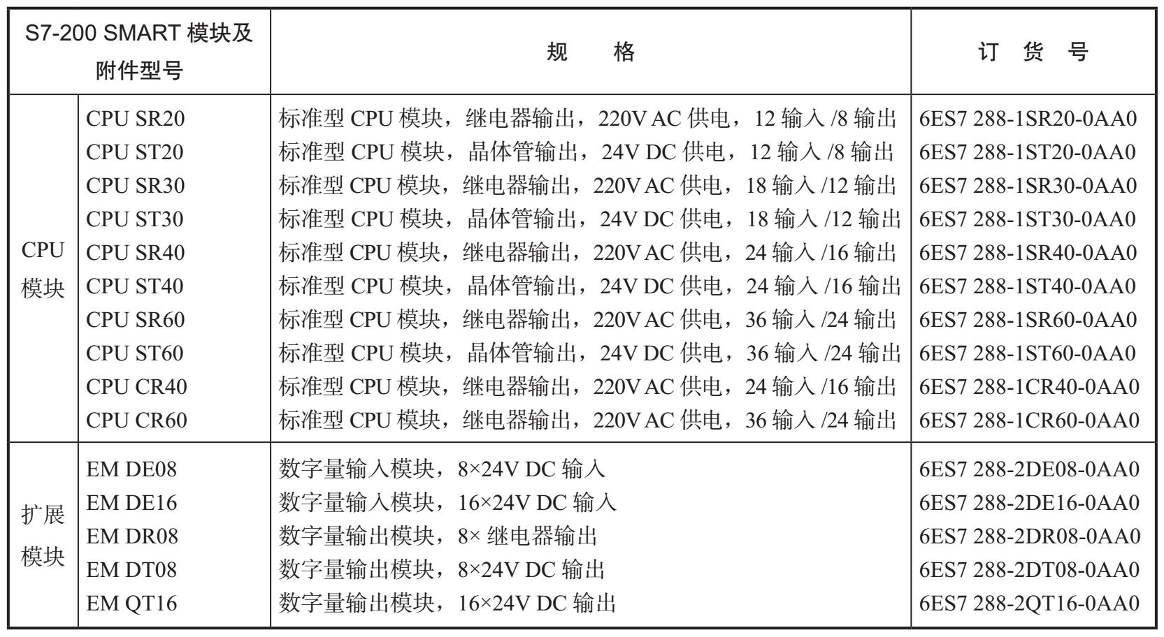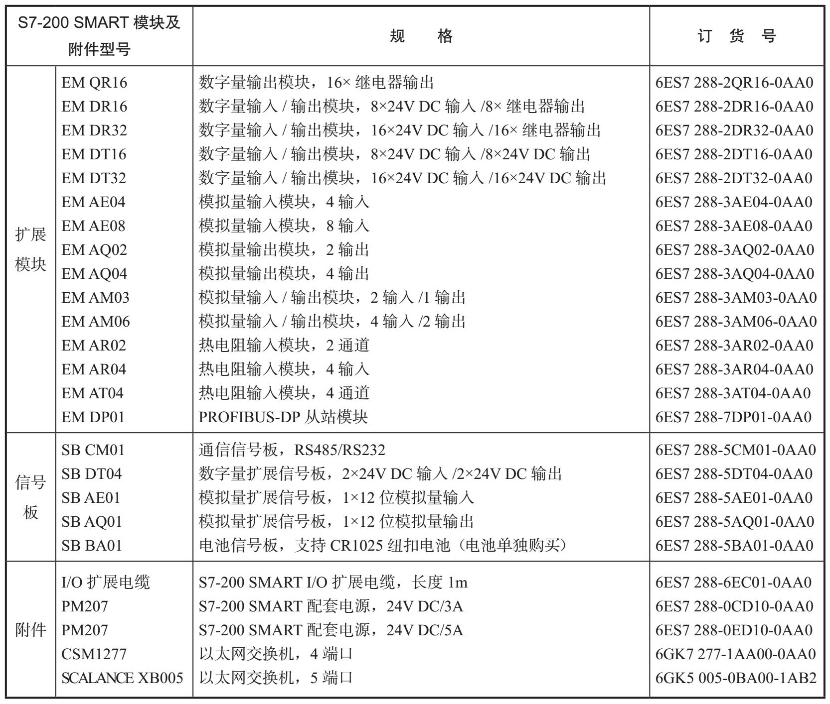2.1.5 S7-200 SMART常用模块及附件与订货号含义