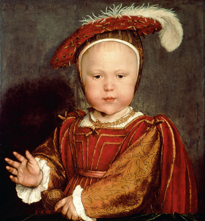 汉斯·荷尔拜因1538年绘制的爱德华六世(1537—1553)小时候的肖像。爱德华于1537年10月出生,迎来了普天同庆。