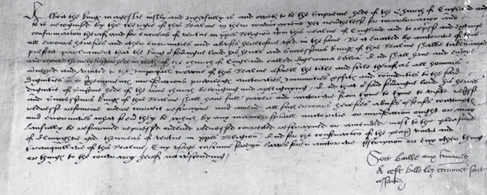 克伦威尔1540年6月30日写给亨利八世的最后一封信。这封在伦敦塔写的信给亨利提供了摆脱克里维斯的安妮所需的证据。克伦威尔为自己附上了一条孤注一掷的附言:“至善至仁的君王,我乞求您饶命、饶命、饶命。”