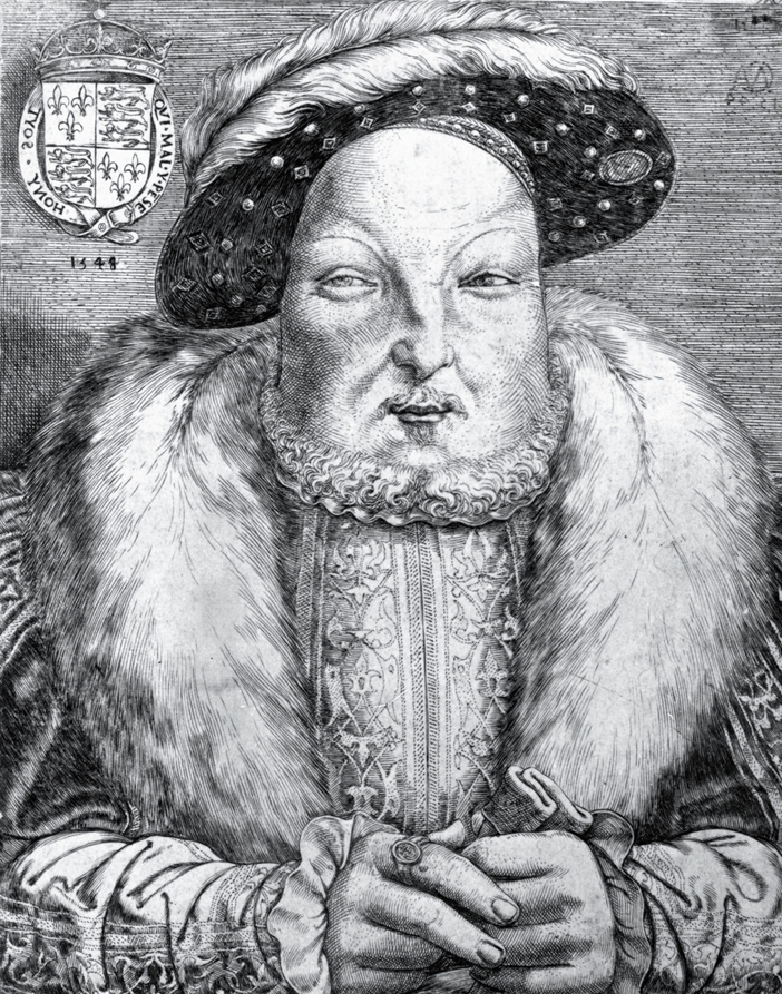 科内利斯·马赛斯(Cornelis Massys)绘制的亨利八世,1548年。这幅画描绘了国王在生命接近尾声时的样子,他非常胖,他的表情揭示了他日益严重的偏执和坏脾气。
