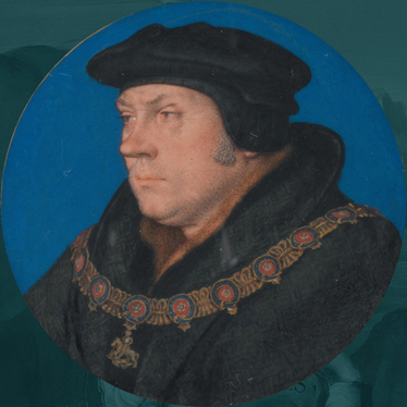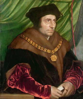 汉斯·荷尔拜因1527年绘制的托马斯·莫尔(1478—1535)。莫尔戴的项链象征了他对国王的服侍,而不是一个具体的职位。在这幅肖像绘制两年后他被任命为大法官。