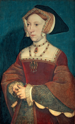 汉斯·荷尔拜因1536年绘制的简·西摩尔。这幅肖像是为了纪念亨利八世与他的第三任妻子的婚姻而绘制的,他们的婚礼在其第二任妻子被处决几天后举行。