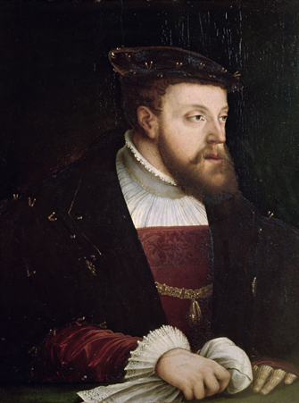 查理五世(1500—1558)。作为神圣罗马帝国皇帝和西班牙的统治者,查理统治了大片地域。他还是阿拉贡凯瑟琳的外甥,这让他跟亨利八世的关系日益紧张。
