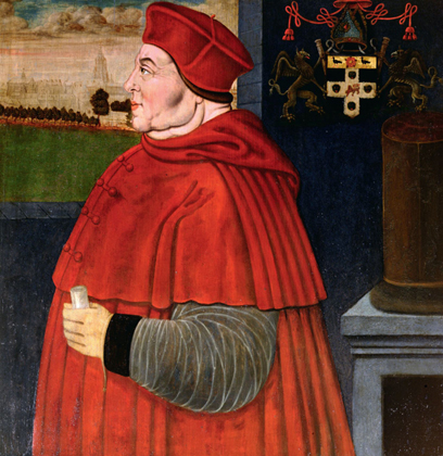 枢机主教托马斯·沃尔西(1470/1471—1530)。这幅肖像是为了纪念1525年枢机主教学院(后更名为圣基督教会学院)在牛津大学建立而制作的。