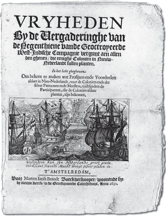 1630年,西印度公司出版了这本小册子,为新尼德兰殖民地的殖民者打广告,将他们的行动描述为一场盛大且有利可图的冒险活动。( National Library of the Netherlands )