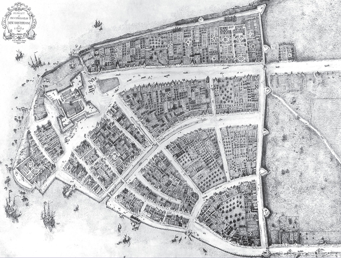 这幅重制的1660年“新阿姆斯特丹”平面图是范·德·邓克前去劝说荷兰政府时使用并最终产生直接影响的图像证据。