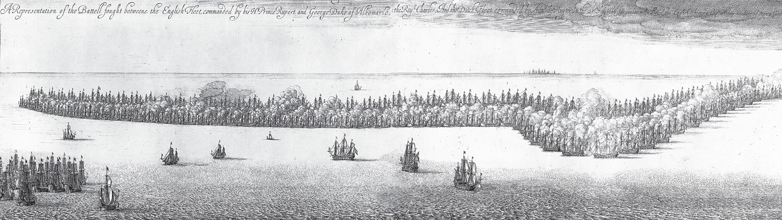 第二次英荷战争期间,英国舰船和荷兰舰船排成“战列线”。( National Maritime Museum,London )