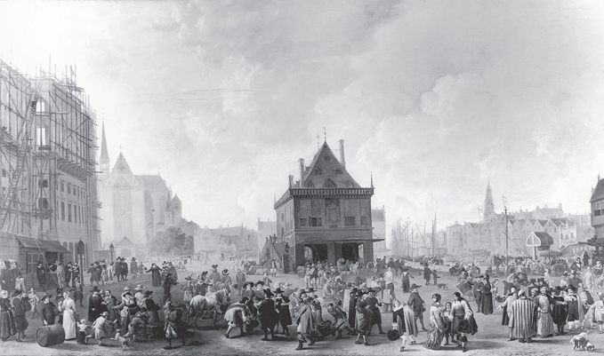 阿姆斯特丹水坝广场,大约就在那时,范·德·邓克抵达荷兰共和国,报告曼哈顿殖民地的居民情况。(Amsterdams Historisch Museum)