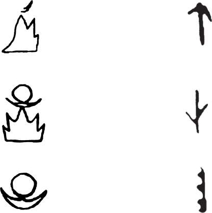 在中国文化中,八卦相当重要。有一部听起来有些神秘的古老经典——《周易》,就是以八卦的道理为根本的。于是,有人认为汉字也起源于八卦。他们举了一个很有意思的例子:在八卦中,有一个坎卦,表示水的意思。你看,坎卦是这个样子的: