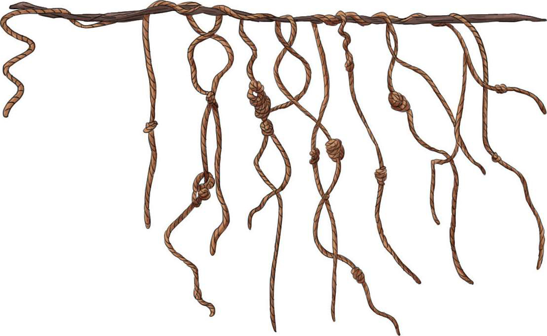什么叫作结绳呢?这是古人提醒自己别忘事的一种办法。他们随身携带一根绳子,有大事,就系一个大疙瘩,有小事,就系一个小疙瘩。这种风俗见于世界各地,有些比较原始的部落,现在还在使用结绳记事。