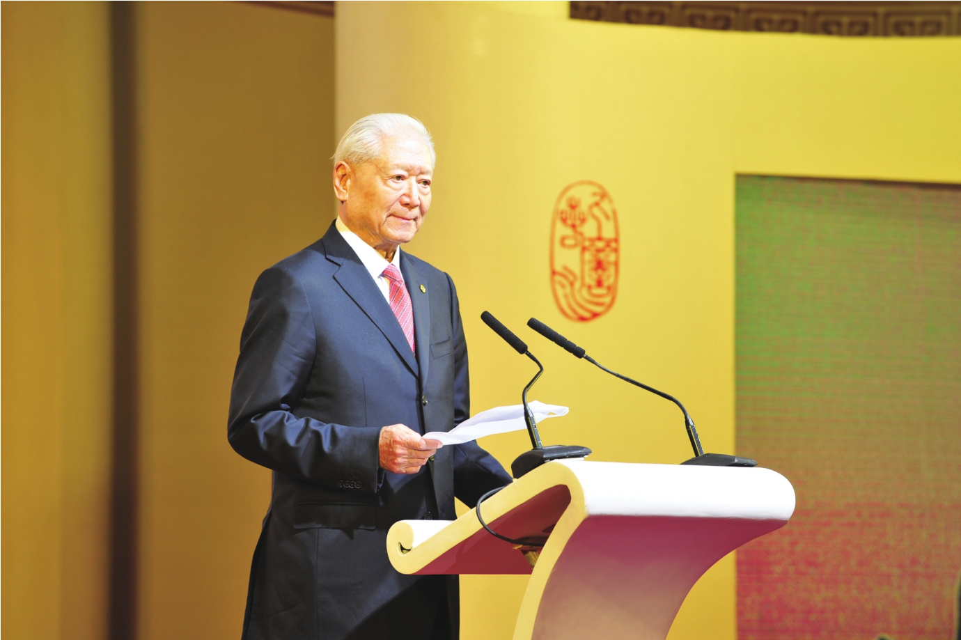 |2015年11月1日郑必坚在第二届“读懂中国”国际会议开幕晚宴上致辞。