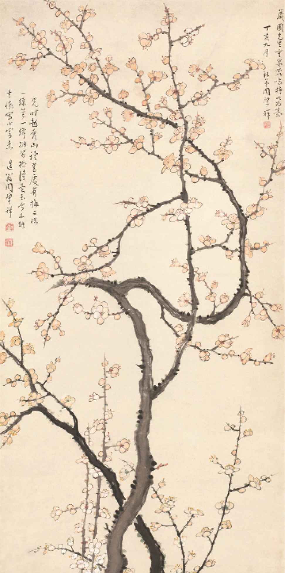 下雪了,过年了。大年初一,我早早就起来,到后园选摘几枝全是骨朵的蜡梅,把骨朵都剥下来,用极细的铜丝——这种铜丝是穿珠花用的,就叫作“花丝”,把这些骨朵穿成插鬓的花。我们县北门的城门口有一家穿珠花的铺子,我放学回家路过,总要钻进去看几个女工怎样穿珠花,我就用她们的办法穿成各式各样的蜡梅珠花。我在这些蜡梅珠子花当中嵌了几粒天竺果,——我家后园的一角有一棵天竺。黄蜡梅、红天竺,我到现在还很得意:那是真很好看的。我把这些蜡梅珠花送给我的祖母,送给大伯母,送给我的继母。她们梳了头,就插戴起来。然后,互相拜年。我应该当一个工艺美术师的,写什么屁小说!