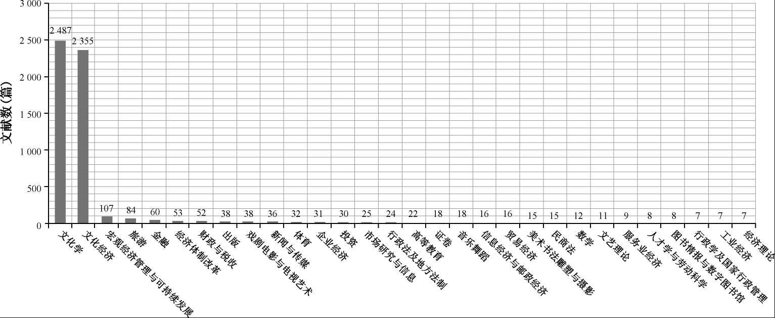 了解文化产业的学科领域,有助于掌握文化产业各学科的研究情况,而关键词是作者意图和主题的概括与凝炼,是文献中的核心和精髓。通过对文化产业学科领域和热点关键词进行分析,可确定文化产业研究中影响力和关注度较高的领域与热点问题。