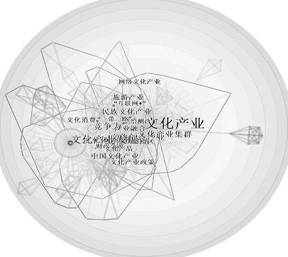 有关文化产业竞争力研究的关键词有文化产业竞争力、波特、区域性文化、文化产业集群、文化产业领域、创意工业、核心文化产业、国家竞争优势、钻石理论、支撑机构、比较优势、经济地理、产业政策、文化建设、规范发展等。文化产业竞争力研究主要包括文化产业竞争力内涵、结构、指标体系的建立及评价与分析等方面。花建认为,文化产业竞争力可以划分为微观、中观和宏观三个层面,具体包括整体创新能力、市场拓展能力、成本控制能力及可持续发展能力等;王文锋通过探究文化产业竞争力评价模型和指标体系研究的脉络,得出产业竞争力主要来源于产业内部运作效率形成的竞争力和外部环境影响而形成的竞争力两个方面,内外合力相辅相成。王志东认为在我国经济新常态背景下,文化与科技融合发展是推动我国文化产业创新发展的重要路径,是增强我国文化影响力的有力手段,更是提升我国文化产业竞争力的必由之路。