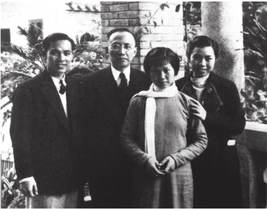 ◎郭沫若筹资复刊广州《救亡日报》时,曾得到十九路军团长吴履逊及其弟吴履泰的帮助(左起:吴履逊、于立群、吴履泰、郭沫若)