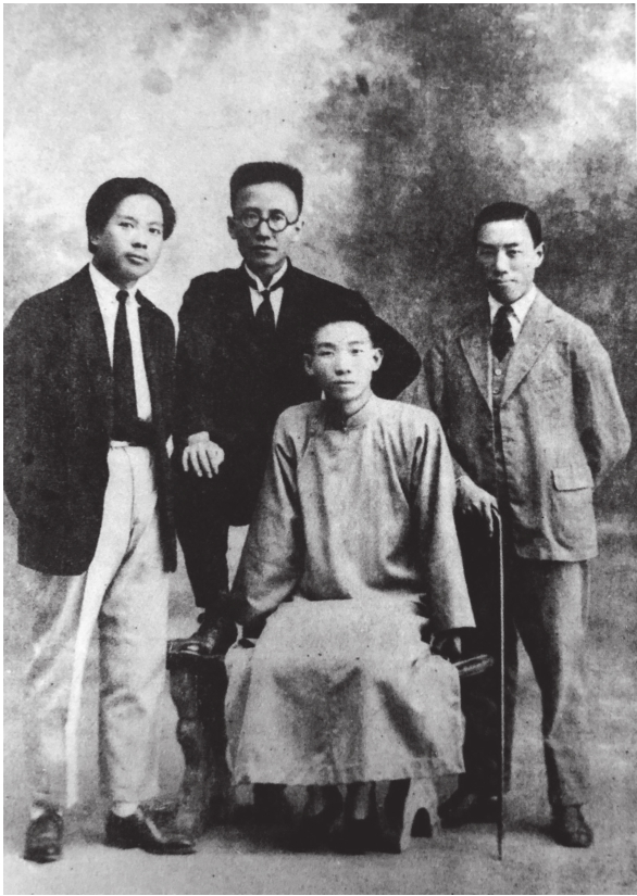◎ 1926年,郭沫若与创造社成员合影(左起:王独清、郭沫若、郁达夫、成仿吾)