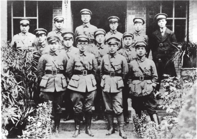 ◎ 1927年春,北伐军部分政工人员在南昌合影(前排左二郭沫若、左三朱克靖、左四李富春,后排左二李一氓、左三林伯渠)