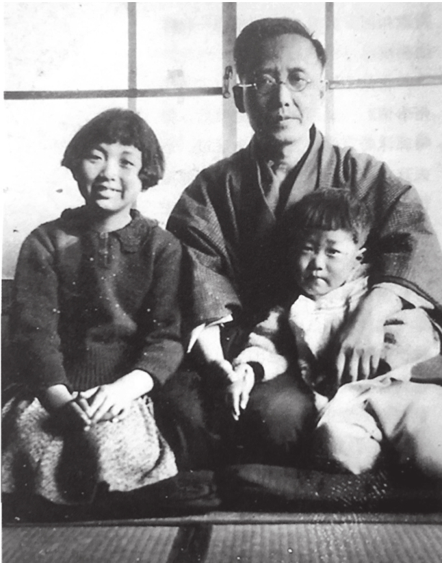 ◎ 1936年,郭沫若与女儿淑瑀、儿子志鸿合影于须和田寓所
